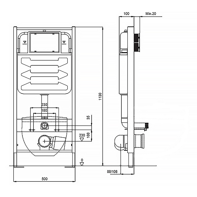 Сет: Инсталляция для подвесного унитаза AZARIO FORTE + подвесной унитаз Azario UNO ТОРНАДО безободковый, слив "Скрытое Торнадо" + Кнопка смыва AZARIO FORTE, хром глянцевый (AZ-100-100F+AZ-2380+AZ-100-020F)