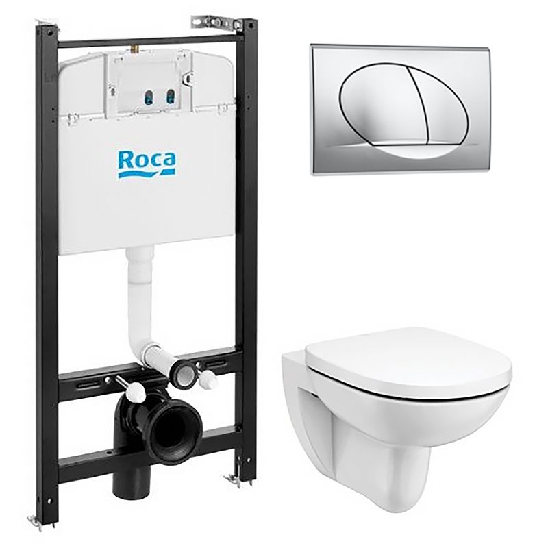 —ПЭК Roca Debba Round Rimless: Инсталляция с подвесным унитазом, быстросъемное сиденье микролифт + Кнопка смыва Roca ACTIVE PL 42B, хром глянец (Z.RU93.0.773.5)