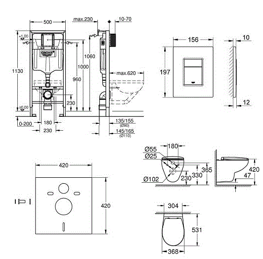—Комплект унитаза с инсталляцией Grohe Solido Compact с сиденьем Микролифт и клавишей смыва Хром (39586000)