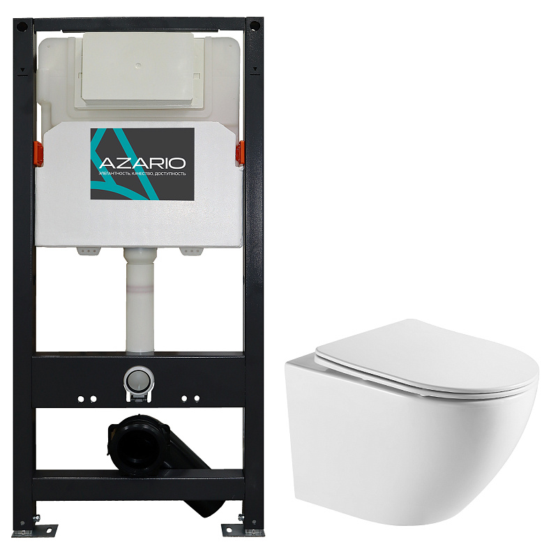 Сет: Инсталляция для подвесного унитаза AZARIO NEW 3/6л + Унитаз подвесной Azario Grado безободковый, слив "Торнадо", сиденье микролифт (AZ-501A+AZ-0046-UQ1)