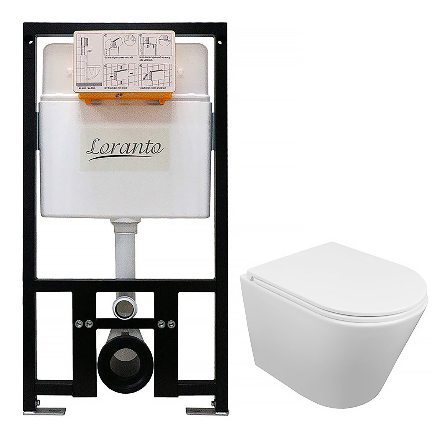 —Сет: Инсталляция LORANTO Prestige + подвесной унитаз Azario Teramo 515х355х365 безободковый, система смыва "Скрытое торнадо" в комплекте с быстросъемным сидением микролифт (БЕЗ КНОПКИ) (4551+AZ-0053-UQ3)