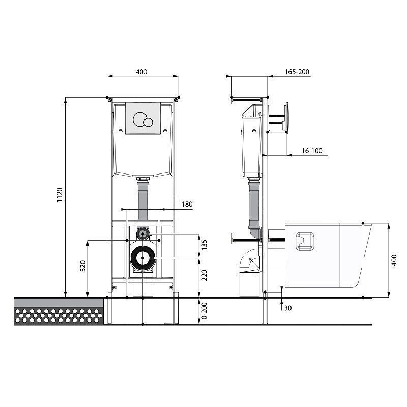 —ПЭК: Santek Нео rimless подвесной безободковый унитаз с сиденьем + инсталляция + панель смыва хром (1.WH50.1.572)