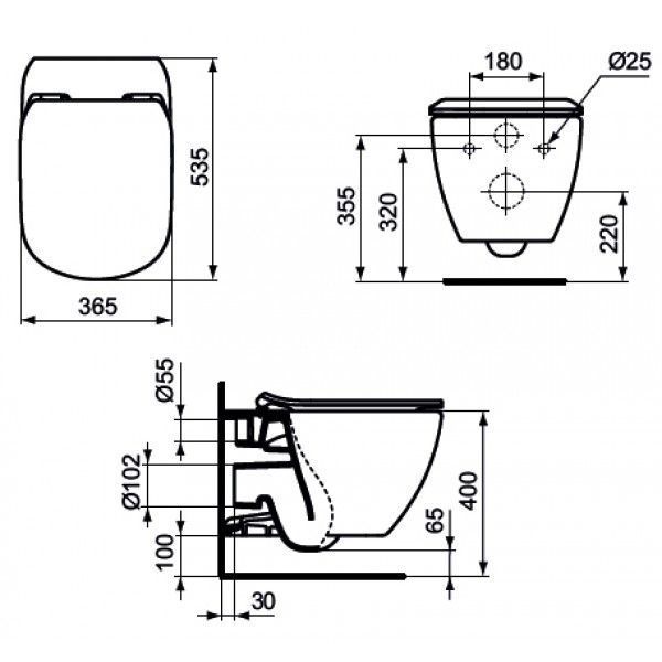 Габариты унитаза (ШхВхД): 365х400х535 мм.