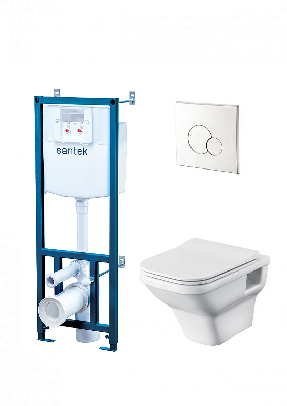 Пэк Santek Лайн подвесная чаша rimless + инсталляция + сиденье Slim, SoftClose + панель смыва хром (1.WH50.1.729)