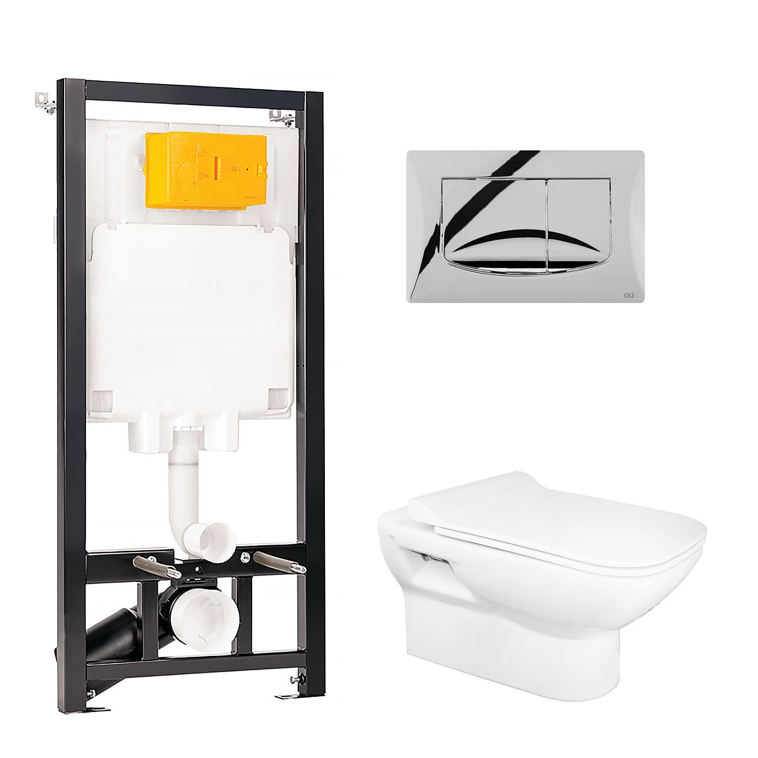 — Комплект инсталляция OLI 80 ECO + подвесной унитаз Kale BABEL с сиденьем микролифт +панель слива River Della хром глянцевый (310200100024+310200700005(310200700038)(7111036300)