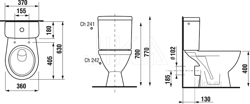 Унитаз-компакт JICA LYRA PLUS 360x630x770 напольный, горизонтальный выпуск, нижний подвод воды, монтажный комплект, белый (8.2638.6.000.242.9)