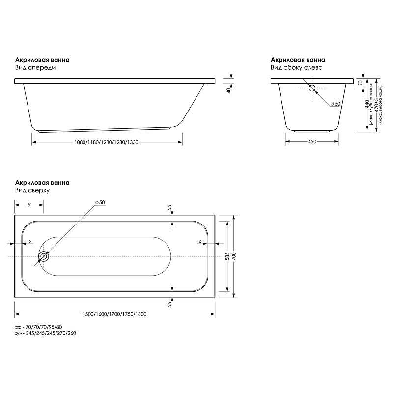 Стальные ванныЧугунные ванныКомплектующие