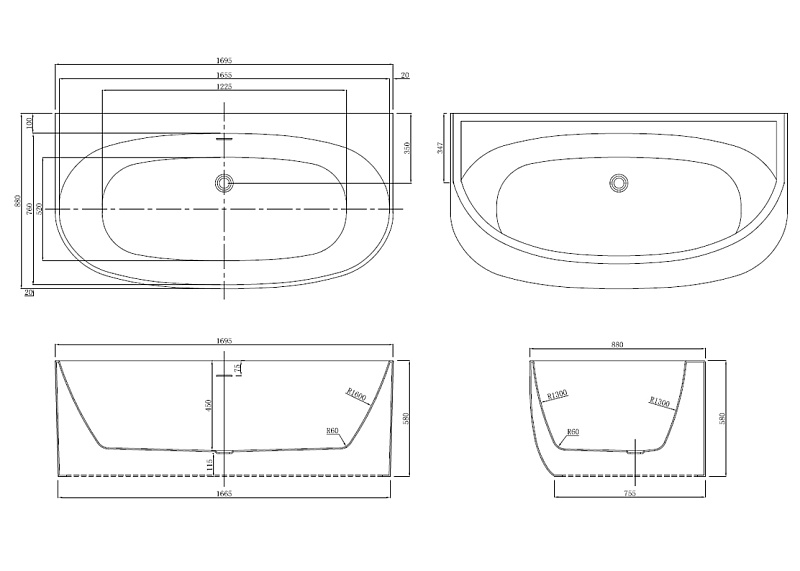 Ванна акриловая Azario Cambridge 169.5х88 пристенная (CAM17289)