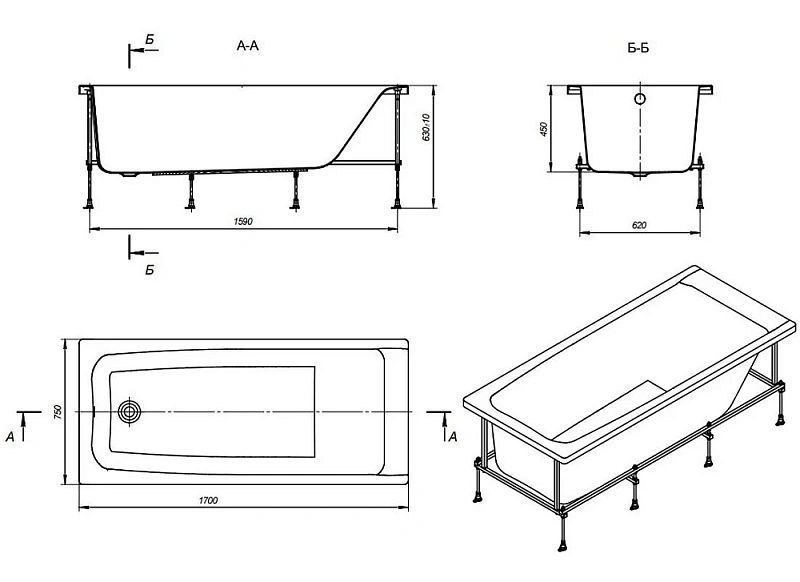 Толщина ванны, мм