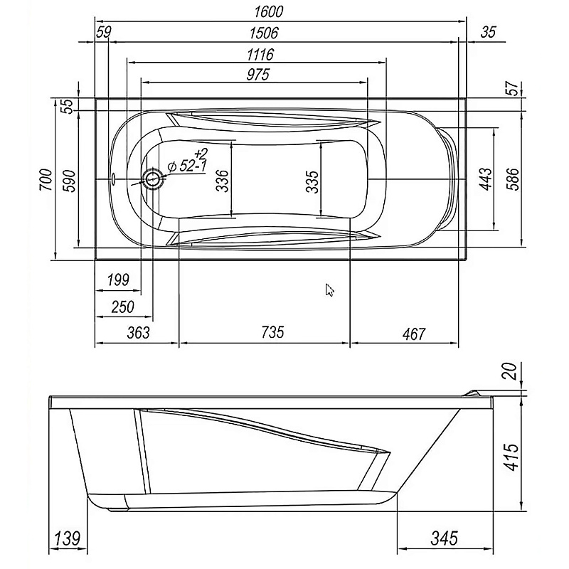 —Ванна акриловая Loranto Arctica 160х70 (CS00025378)