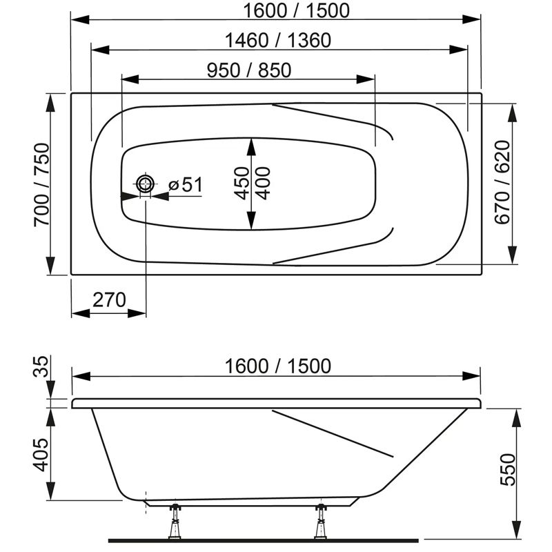 Толщина ванны, мм