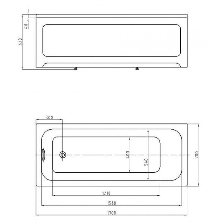 BELLA Ванна акриловая прямоугольная 170х70 см СХЕМА