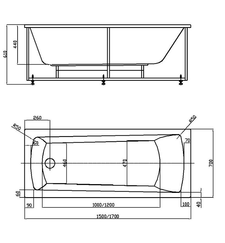 ENRICA Ванна акриловая прямоугольная 150х70 см СХЕМА