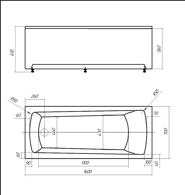ENRICA Ванна акриловая прямоугольная 160х70 см СХЕМА