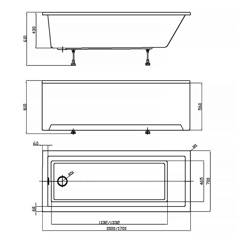 Ванна акриловая Azario EMILIA 170х70 прямоугольная, пристенная (AV.0011270)