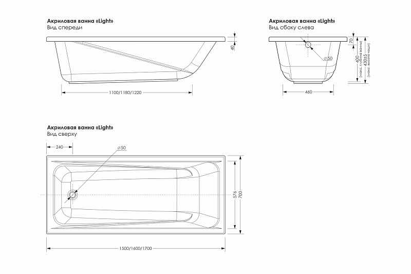 —Ванна акриловая Метакам Light 170х70 пристенная (АВS_011277)