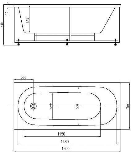 FELISA Ванна акриловая прямоугольная 160х70 см СХЕМА