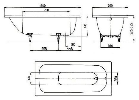 Ванна стальная Kaldewei SANIFORM PLUS 150х70 пристенная (111600010001)