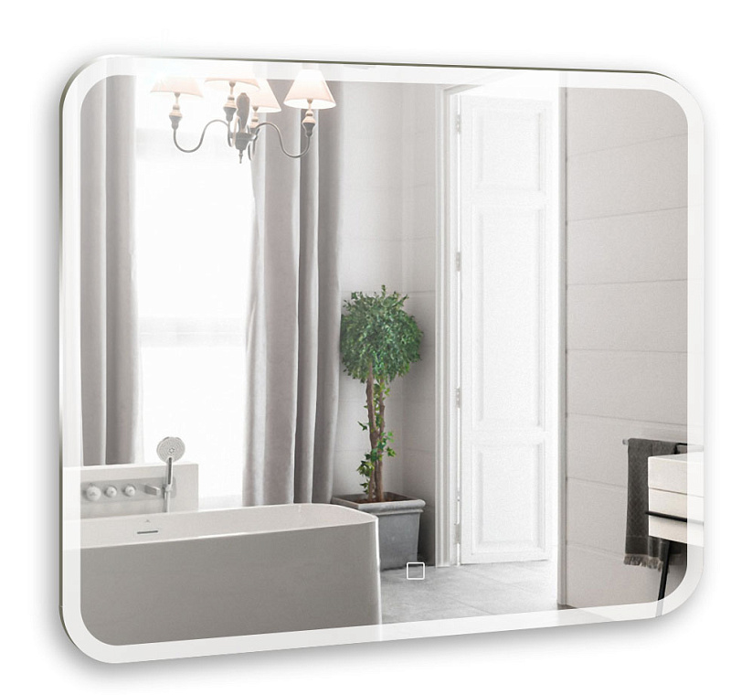 Зеркало оснащено сенсорным выключателем с функцией плавного диммирования с запоминанием последнего значения. Короткое касание светящейся области включает/выключает подсветку, длительное касание меняет яркость свечения.