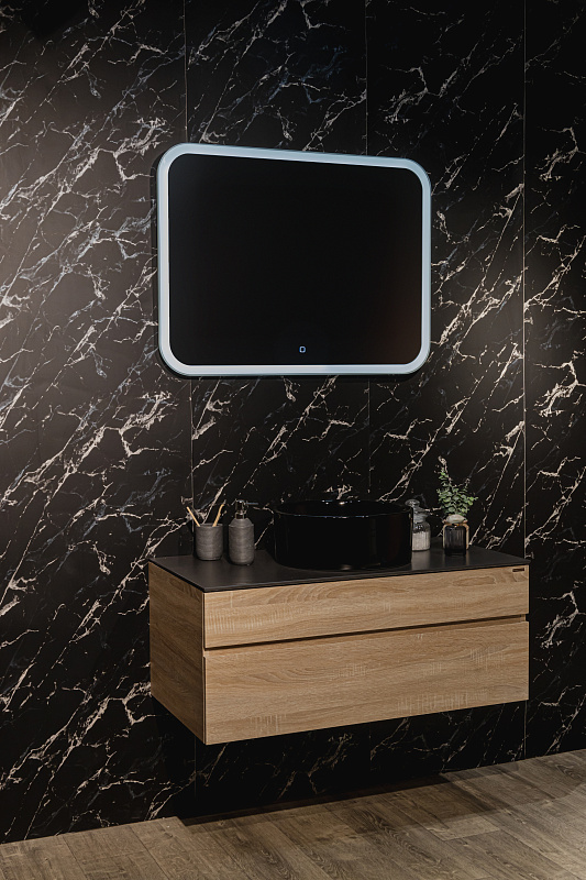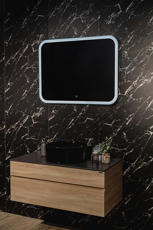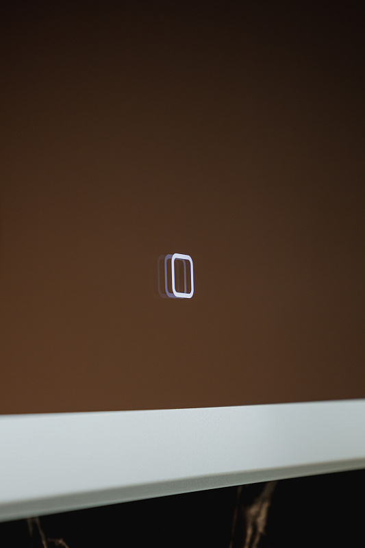 Зеркало оснащено сенсорным выключателем с функцией плавного диммирования с запоминанием последнего значения. Короткое касание светящейся области включает/выключает подсветку, длительное касание меняет яркость свечения.
