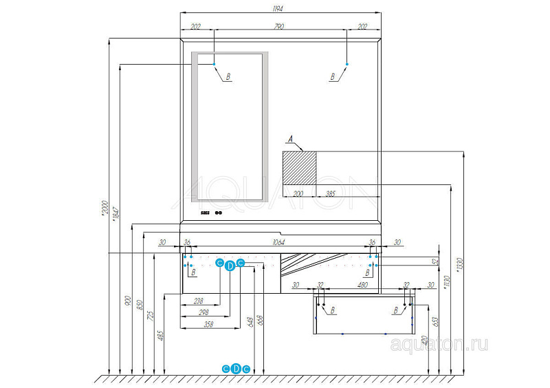 LED-подсветка, выполненная в форме рамки в левой части зеркала, идеально сочетается с лаконичным дизайном тумбы и служит функциональным элементом освещения.
