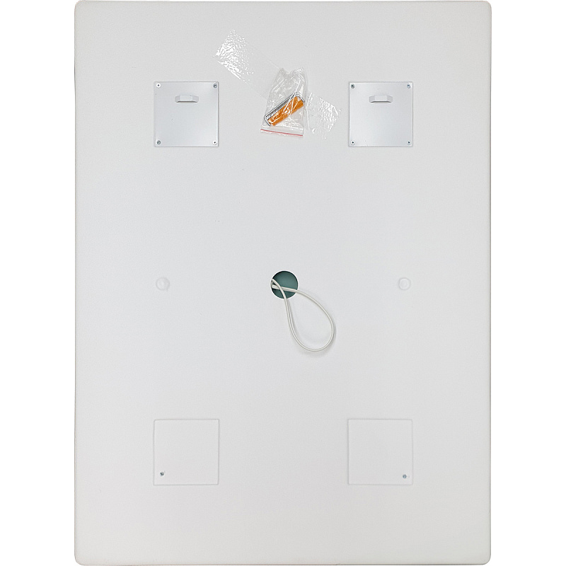 Прямоугольное зеркало с фронтальной LED-подсветкой и функцией диммирования с запоминанием последнего значения. Вертикальное крепление. Зеркало для ванной оснащено подогревом и голосовым управлением.