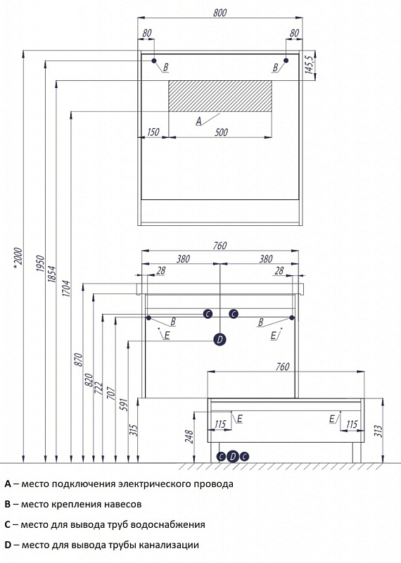 Коллекция выполнена в популярном размере 800 мм. В размере 800 мм к тумбе предлагается зеркало.